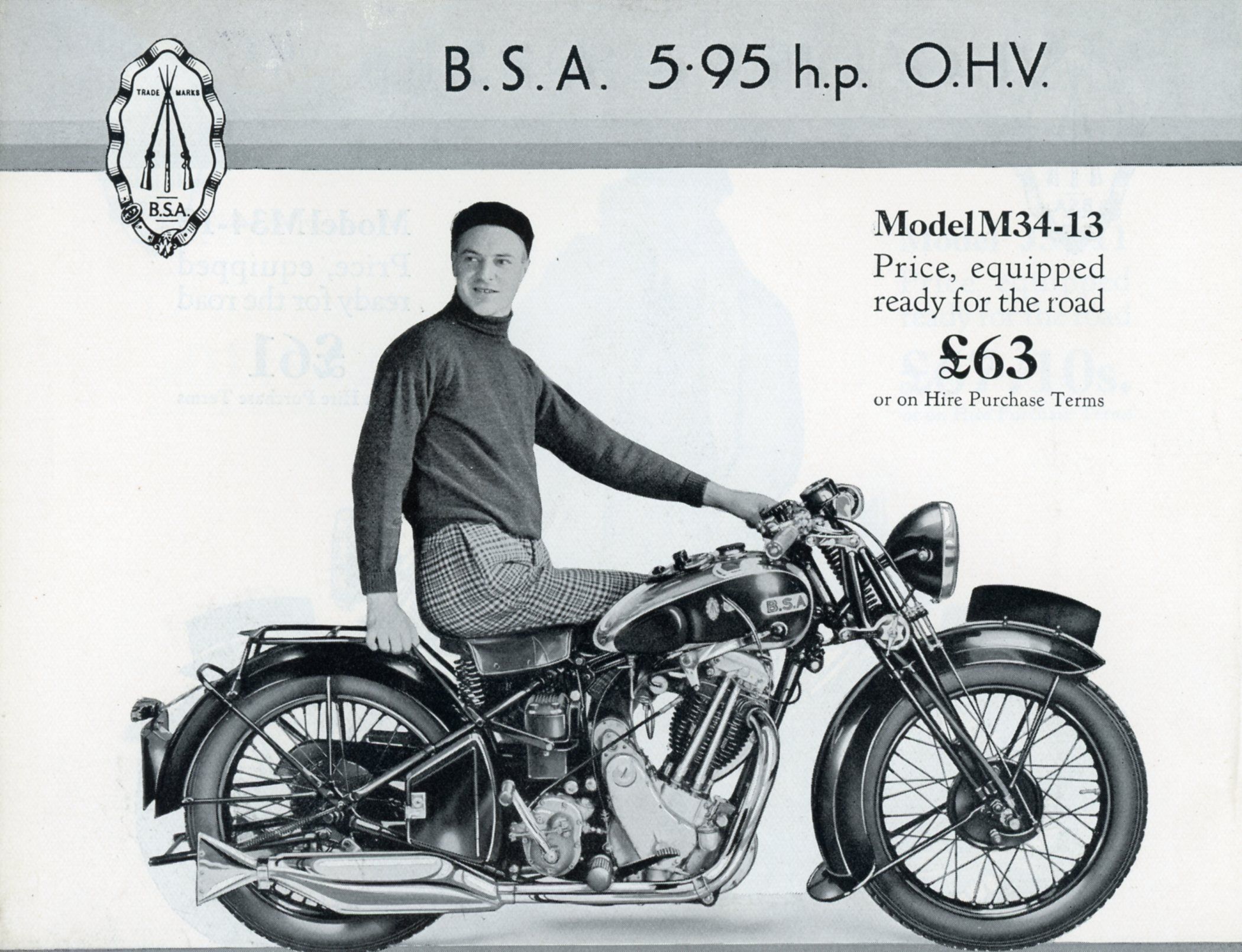M34-12 or 5.95 h.p. S.V. The big version of the sidevalve sloper for pulling a sidecar. The second year for the 595 cc SV Sloper for more extra power. |