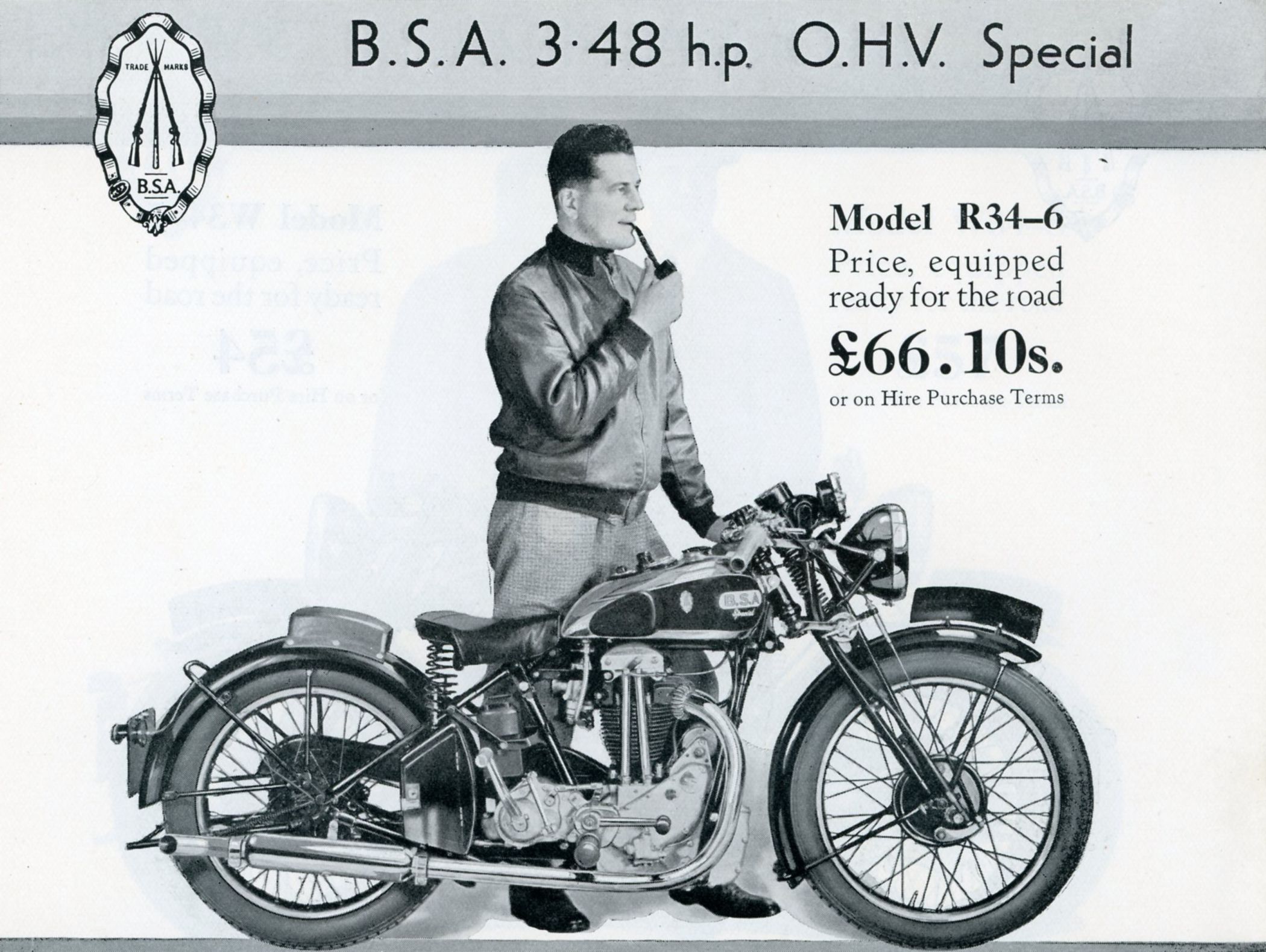 B34-2 or 2.49 h.p. O.H.V. The basic 249cc OHV model with total loss lubrication and Lucas Maglita ignition. |