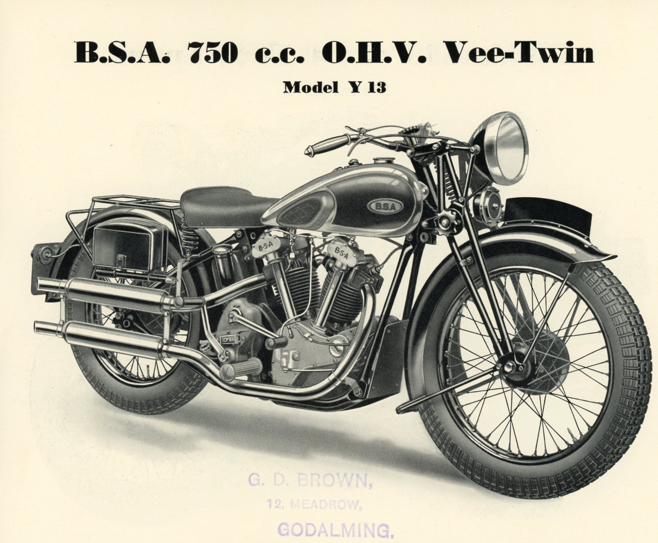 Y13 or 750 c.c. O.H.V. Vee-Twin. This spectacular 750 cc OHV V-twin